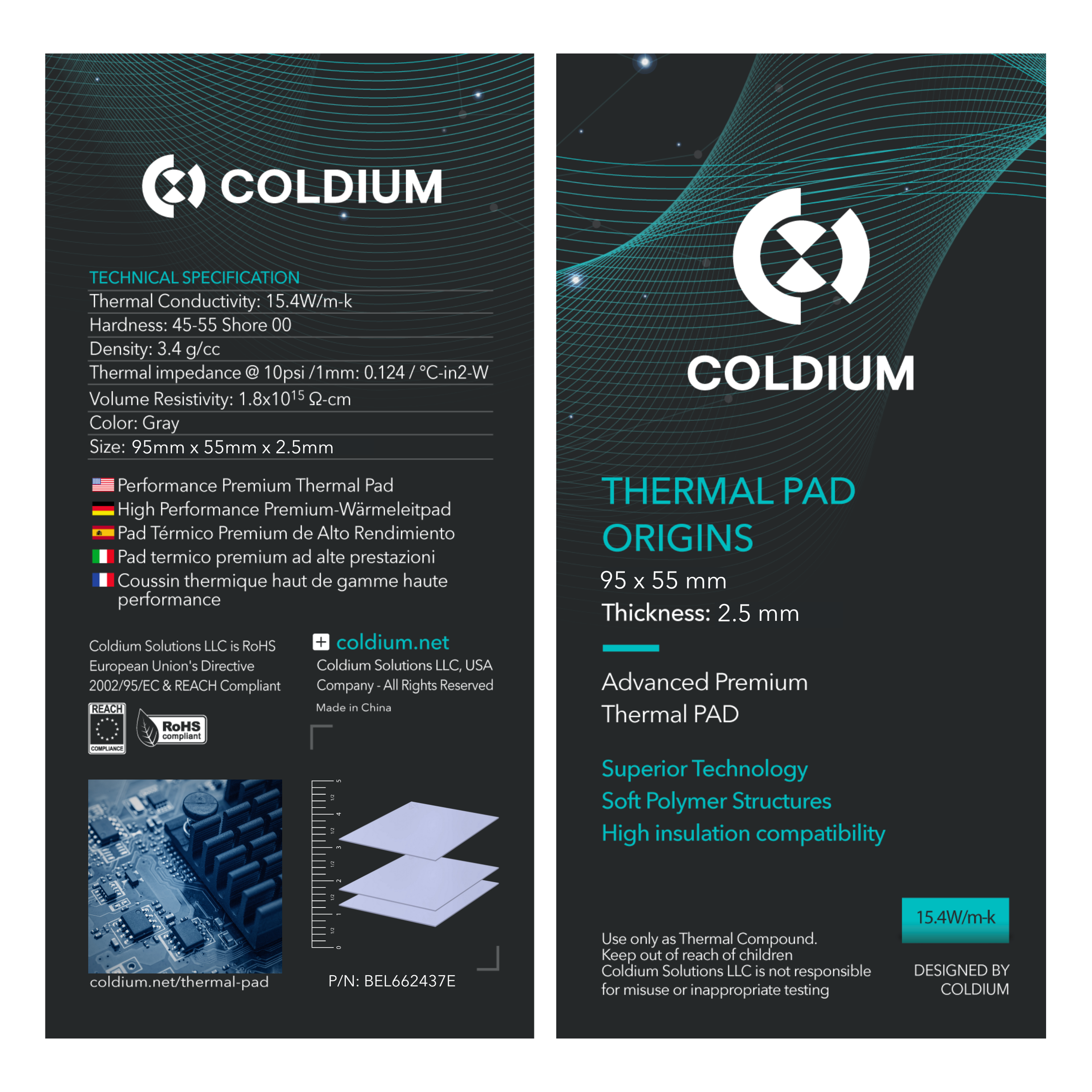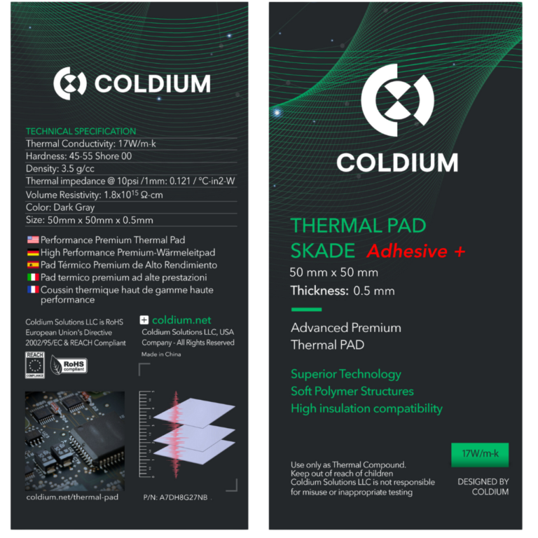 Based on advanced technology, Coldium pads exhibit outstanding, reliable physical and chemical thermal conduction performance and lower compression set. Its intrinsic adhesion and soft polymer structures ensure bridging the irregular gap. Voids to optimize heat dissipation without sacrificing thermal performance by laminating with additional adhesives or other surface treatments.